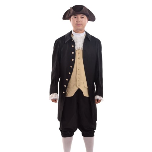 Get a complete look with our men's colonial suit. This costume set is perfect for the 4th of July, Halloween, historical reenactments, or stage plays.